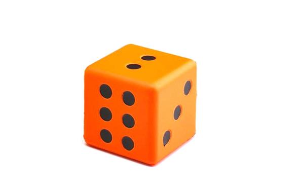 1 grote dobbelsteen (kleur naar keuze: geel of oranje) van 7,5 cm