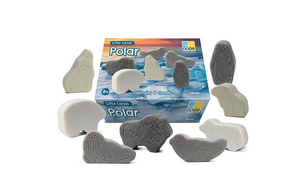 De aantrekkelijke pooldieren in deze set zijn perfect voor ijzig, fantasierijk spelen. Deze set bevat 8 stenen die zeer geschikt zijn voor kleine handen. Elke steen is gegoten uit een speciale mix van steen en hars. De grootste steen meet 5,5 cm. De set bevat een poolvos, poolhaas, poolwolf, muskusos, pinguïn, ijsbeer, zeehond en walrus.