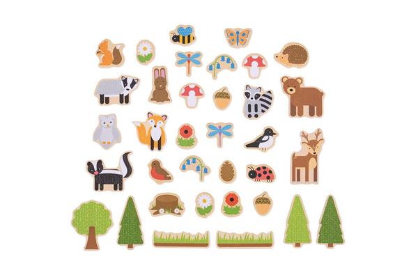 Set van 35 magneten in het thema bos. Deze set bevat bosdieren, bloemen, bomen en zo veel meer! Compleet geleverd met een stevige opbergdoos.