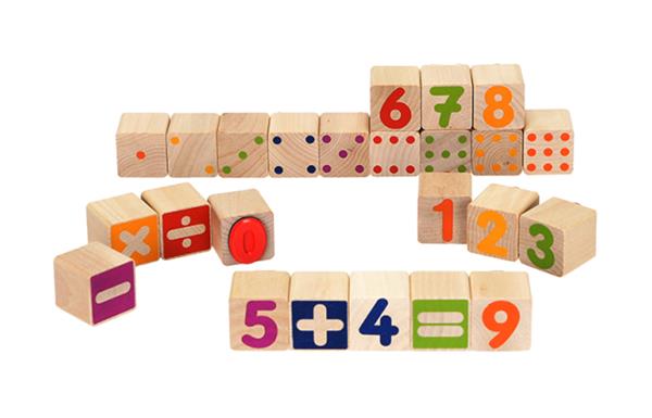 24 houten rekenstempels (afm. 3 x 3 x 4 cm)