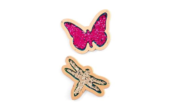 1 sensorisch muurbord - vlinder (afm. 24 x 35 x 1,5 cm) 1 sensorisch muurbord - libel